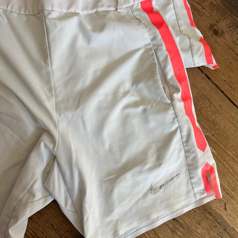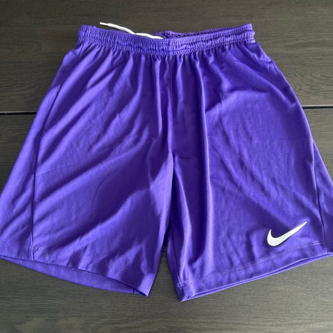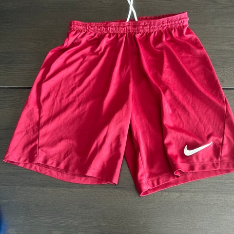 Nike Dri-Fit shorts for herre i sort med røde detaljer. Laget av lett og pustende materiale, ideelt for trening og sportsaktiviteter. Størrelse S.