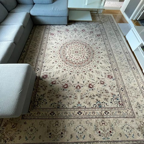 Teppe med tradisjonelt mønster i beige toner. Passer godt i stue eller oppholdsrom.