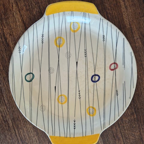 Egersund Keramikk Tallerken med flerfarget mønster. Dekorativ tallerken med tradisjonelt design, ideell for både daglig bruk og som samleobjekt. Laget i Norge. Asjetten er fra etter 2.verdenskrig..