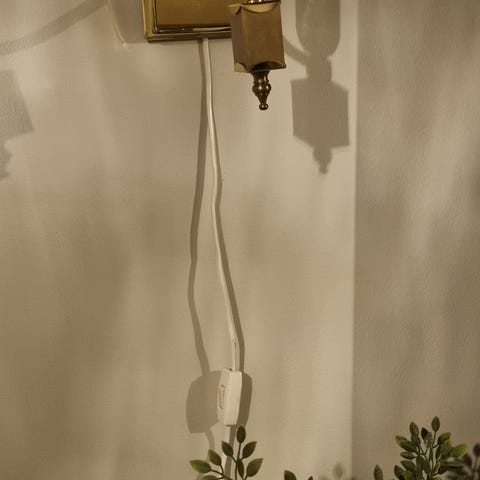 Selger en liten og snerten vegglampe med enkelt og funksjonelt design. Lampen er i god fungerende stand, men har noe bruksmerker, noe som er normalt for alder og bruk – se bilder.