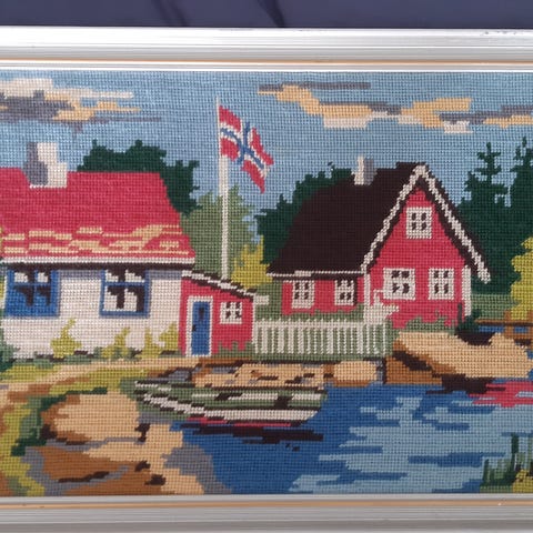 Vintage, retro, vev, håndarbeid, håndlaget, sydd, vevd, tradisjon, Bergen, kyst, by, motiv.