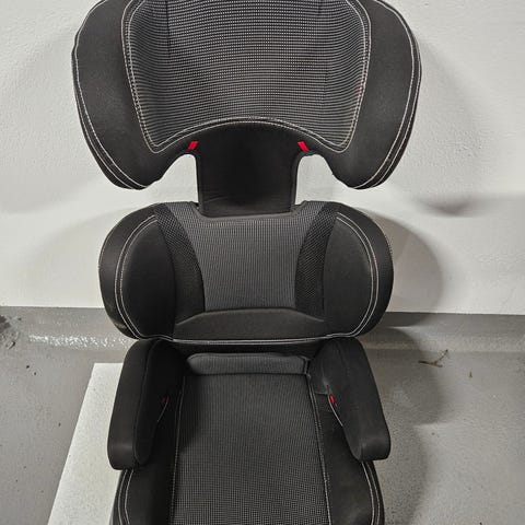 Har isofix og i tillegg mulighet for å feste med setebelte.