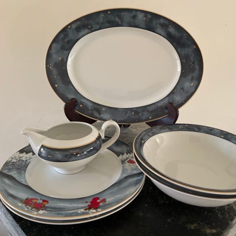 Laget i feltspatporselen med koselig julemotiv i rødt og grønt.