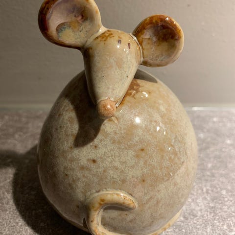 Dekorativ katt i keramikk til salgs. Ca 20 cm høy.