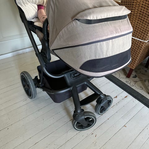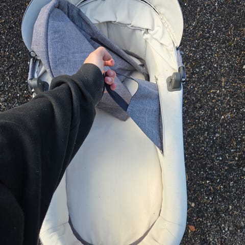 Dypvogn bagen til Easywalker QTRO. Myggnetting og trekk følger med. Det grå foret inni bagen, og lakenet på madrassen kan taes av og vaskes. Lett å bære, og fungerer godt som «sovekurv» men knøttet er liten. MÅ HENTES