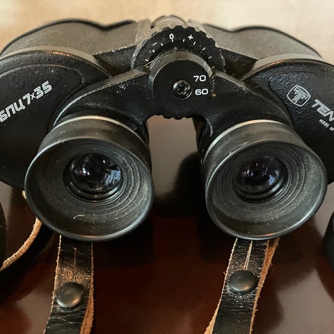 Sovietisk 6x24 kikkert i sort metall. Denne kikkerten er produsert i USSR og har en forstørrelse på 6x med en objektivdiameter på 24 mm. Konstruksjonen er solid med et vintage design, ideell for samlere eller friluftsentusiaster. Kikkerten leveres med et beskyttende etui i matchende materiale.