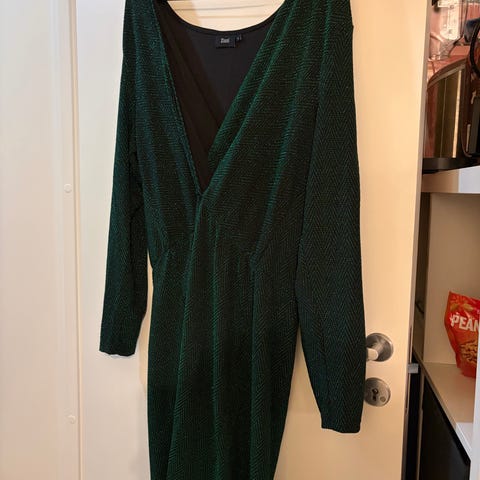 Omslag ved brystet, søm under brystet. Ca lengde på kne.