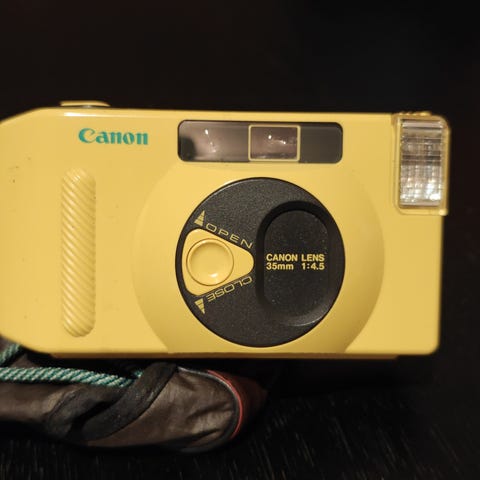 35 mm analogt kamera med innebygd blits som bruker 1 x AAA batteri. Følger med Ilford Delta 100 black and white film (OBS - film gikk ut på dato mars 2025, filmen kan fortsatt fungere helt fint en god stund etterpå, men kan gi svakere farger, kornete bilder) Kameraet har aldri blitt brukt.