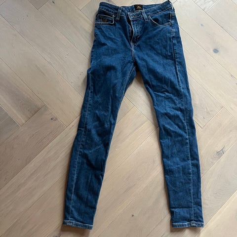 Pen mørk blå Lee bukse, str 27/31.