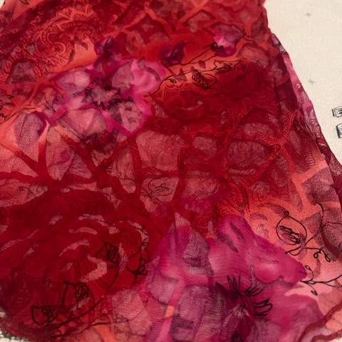 En ny tunika med fine detaljer. Kapper og blonde nede. Skal krølles ved vask for å få en krepp look.