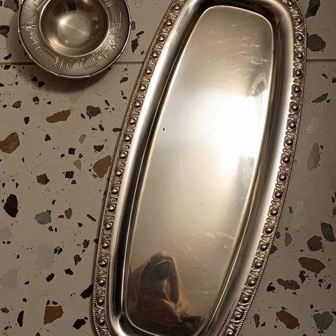 En dekorativ, eggeformet metallfigur. Mest sannsynlig laget av sølvplett. 🥚