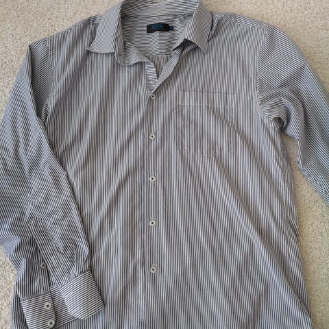H&M Regular Fit skjorte i størrelse XL. Skjorten har et blått rutete mønster og er laget av 100% bomull. Egnet for menn, denne skjorten tilbyr en komfortabel passform og er ideell for både hverdagsbruk og mer formelle anledninger.