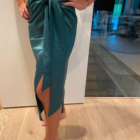 Selger dette kjempefine skjørtet, da det ikke blir brukt. Langt gullfarget «silkeskjørt» i str 10, som tilsvarer ca str M. Sitter veldig fint på. Kun brukt et par ganger.