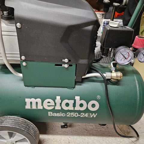 KGK Kompressor i solid konstruksjon av stål med 2 tanker. Kompressoren er og egnet for ulike bruksområder som krever trykkluft. Den er utstyrt med hjul for enkel transport og har en robust design som tåler utendørs bruk.