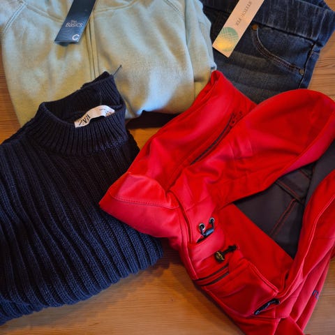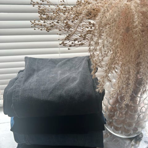 2 stk skinny, en stoff-bukse og en mom jeans.