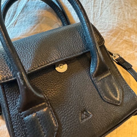 Lagd av perler, foret med stoff. Liten og nett veske.