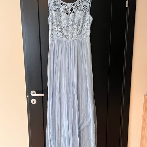 ADOORE kjole til spesiell anledning i størrelse Kjolen har et blått blomstrete mønster og lange ermer. Den er designet for spesielle anledninger og gir et elegant uttrykk. Ny med lapp