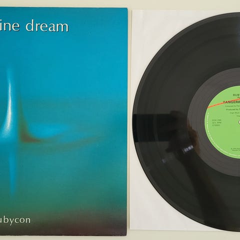 Tangerine Dream Rubycon vinyl album. Dette albumet er kjent for sin elektroniske musikk og atmosfæriske lydbilde. Perfekt for samlere av klassisk elektronisk musikk.