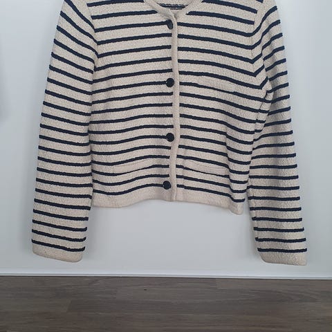 90 tallet Vintage. Stripete KORT "Bolero" Cardigan. Grønn.