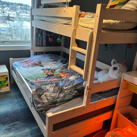 Pent brukt barneseng (uten madrass) selges. Senga er til madrassstørrelsen 200x90
