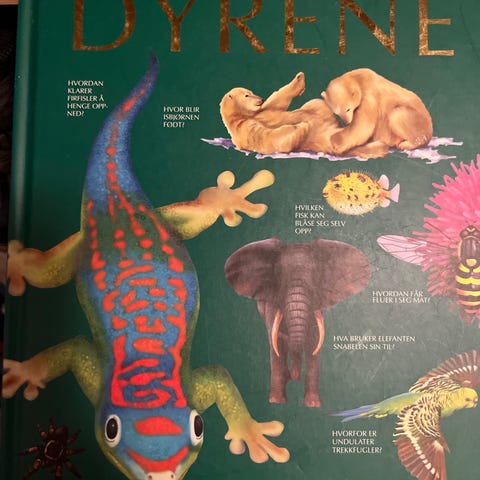 Bok Dyrene i Havet Innbundet. Denne boken utforsker forskjellige marine dyr og deres egenskaper. Perfekt for de som er interessert i havbiologi og dyreliv. Selges kr 100