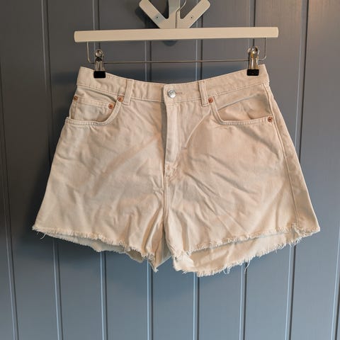 NA-KD shorts i beige farge, størrelse 36. Disse shortsene har en klassisk design med lommer foran og bak, samt en behagelig passform. Helt ny (med lappen på).