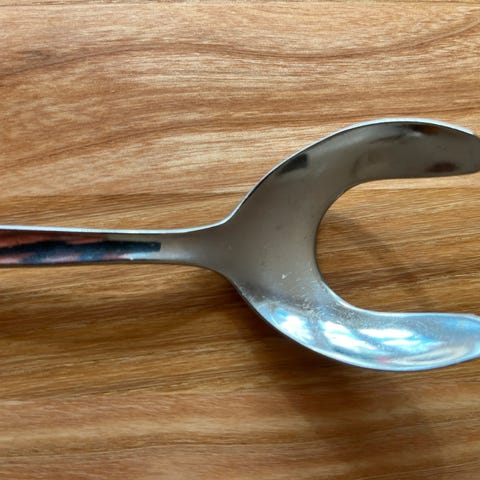 Stor vintage måleskje i rustfritt stål.
