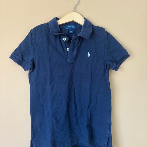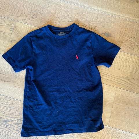 Ralph Lauren Polo T-skjorte for gutter i størrelse 116. Fargen er blå, og den er laget av mykt materiale som gir komfort. Passer godt til hverdagsbruk.