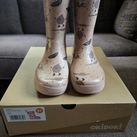 Selger regnstøvler str 31, i god stand, ble brukt veldig lite - 200 kr. Må hentes på Kløfta eller kan sendes dersom kjøper betaler frakt.