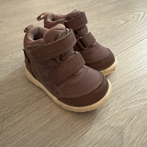 Ingen synlig slitasje, ble lite brukt da vi kjøpte de sent. Skyggene på bildene er bare fukt, da skoene er nyvasket.