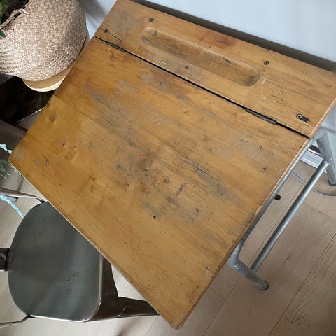 Skolepult/‘skrivebord & stol’ i heltre. Ca. 50-tallet