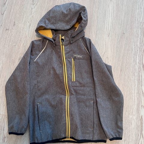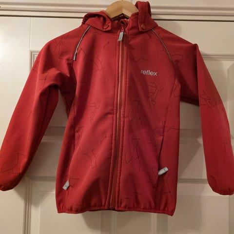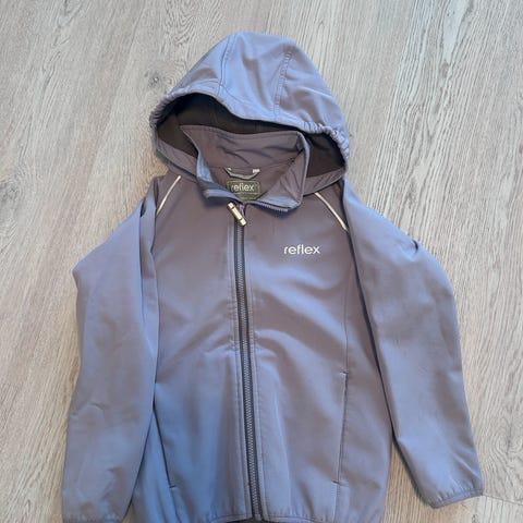 Kjøpt ny, pent og lite brukt av ett barn. Softshell-jakke i lys lilla/lavender med fleecefor som passer fint i overgangssensonger (høst, vår, evt sommer). Et par mm-store merker ved siden av glidelåsen, se nærbilde, ellers intet å anmerke. Fra produsenten: