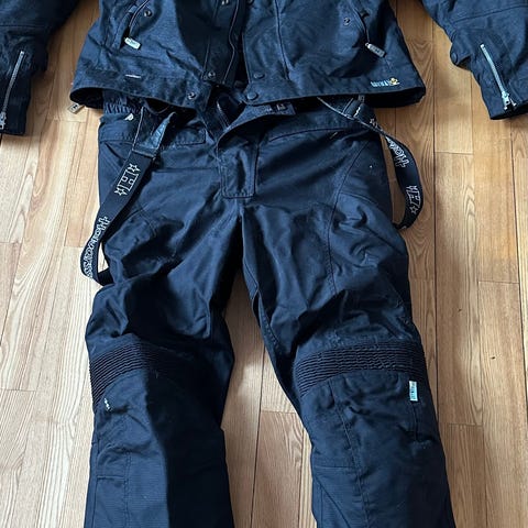Sinisalo International MC-klær Sett Grå/Svart Unisex. Dette settet inkluderer jakke og bukse, laget av slitesterkt materiale med grå og svarte farger. Designet for både menn og kvinner, gir dette settet komfort og beskyttelse under motorsykkelturer. Jakken har flere lommer for praktisk oppbevaring, og buksene har justerbar midje for en tilpasset passform.