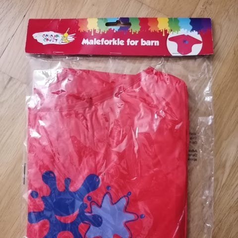Selger et ubrukt maleforkle til barn mellom 7 og 12 år kjøpt på Adlibris (utgått derfra).