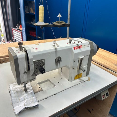 CLAES 8042 symaskin med lang arm. Brukt i skomakerverksted. Maskinen har hatt en eier og er lite brukt. Kjøpt ny for ca 70 000,-