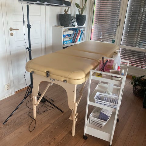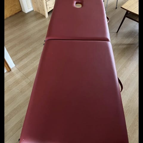Pent brukt massasjebenk av typen delta selges da bruker er gått av med pensjon. Er av årsmodell 2010.