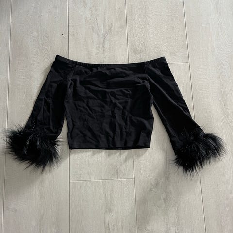 Elegant og stilig off shoulder-modell med fjær rundt armene. Perfekt statement-plagg til fest eller en spesiell anledning. Fra Bikbok