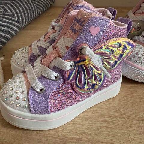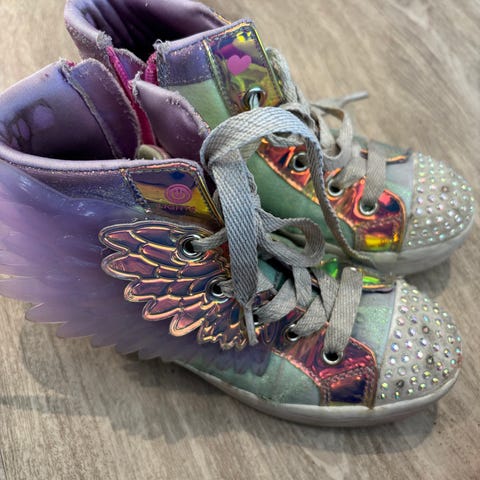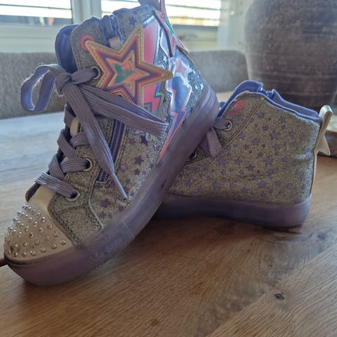 Hele og pene Skechers Twinckle Toes i str 30. Blinkesko halvhøye sneakers med egen knapp for å styre og endre blinkemønstre. Egen blinkevinge med lys. All blinking virker som den skal. Pent brukt