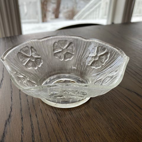 Dekorativ porselenskål med lokk, utsmykket med håndlagde blomster i flere farger på lokket. Krukken har en rund form og en hvit base med små blomsterdetaljer på utsiden. Egnet for oppbevaring av små gjenstander som smykker eller som dekorativ element. Diameter ca 10 cm.