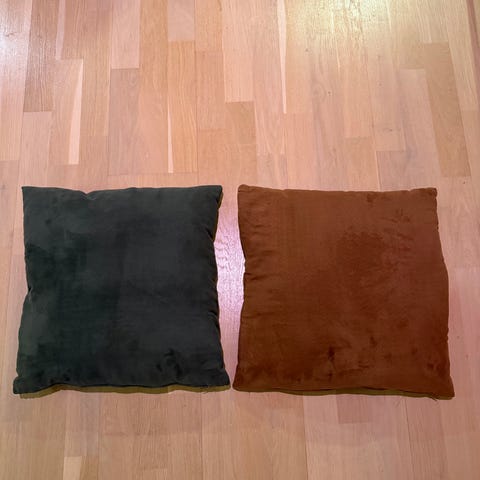 Putetrekk i fløyel i flere farger, selges kr 50.- pr stk