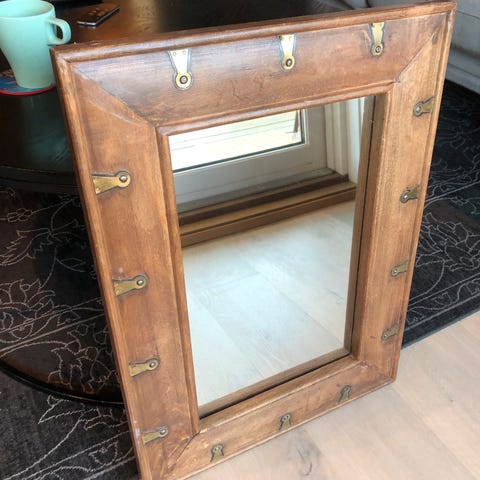 Speilet er ca 75 cm langt og ca 52 cm bredt. Bud ønskes.