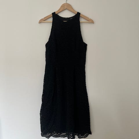 Pen festkjole med blonder fra H&M i str 38. Mørkeblå/navy. Åpen i ryggen. Ubrukt, med lapp på.