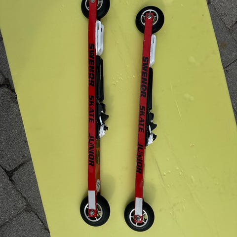 Selger disse rulleskiene da de ikke blir brukt lengre. Er Swenor 2 dekk på dem og Rottefella skate bindinger. De er litt slitne kosmetisk, men går ikke utover funksjon.