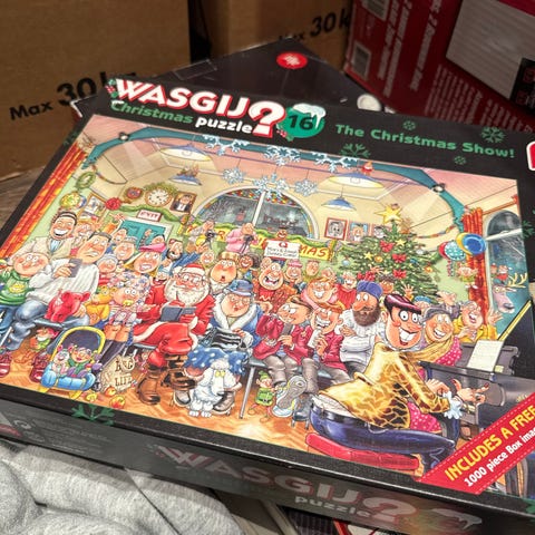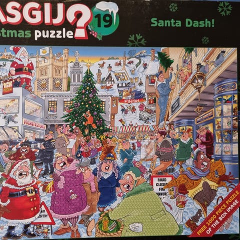 100,- Helt nytt og uåpnet Wasgij julepuslespill fra Jumbo. To puslespill, ett med bildet på boksen og ett der du skal pusle den andre siden.