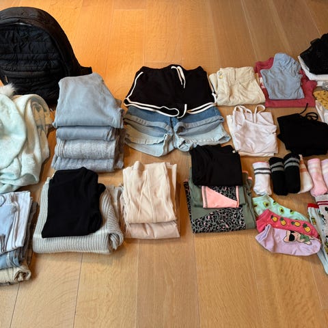 Noen plagg er nesten ikke brukt, andre har litt normal bruksslitasje, ingen hull men noen flekker (se bilder).