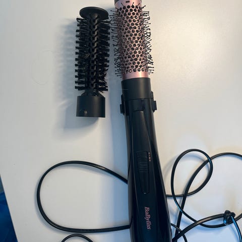 Babyliss børstevarmer med fire utskiftbare tilbehør for styling av hår. Inkluderer rundbørste, kam, rett børste og børste med keramiske pigger. Svart farge, ledningsdrevet.