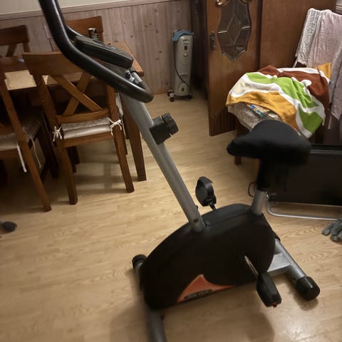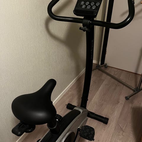 Reebok Edge Indoor Sykkel Treningssykkel i svart farge. Utstyrt med justerbart motstandsnivå, digital skjerm som viser treningsprogrammer, puls og ytelsesdata. Setet og styret kan justeres for tilpasset bruk. Egnet for innendørs trening og kondisjonstrening.