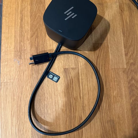 En Hp Thunderbolt G2 120W Dock - brukt over lengre tid, men funker fint. Kan tidvis lage litt støy, men ikke noe man merker om man sitter med et headset e.l. Har ikke slitt noe med portene, så alt skal være funksjonabelt. - 800 kr