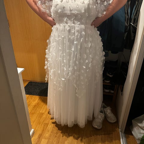 Selger denne ubrukte kjolen som var tenkt til å bruke på vennefest på et senere tidspunkt enn selve bryllupet. Har klart å bestille feil størrelse.