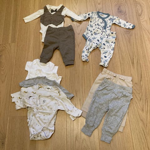 Babytøy i størrelse 62, bestående av følgende plagg: